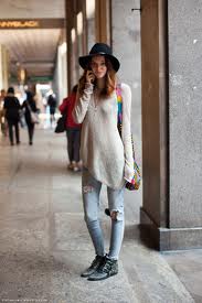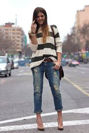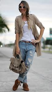 Deși se presupune că blugii rupți merg cel mai bine cu piesele de apartenență ale stilui grunge, există o gamă largă de alte sinteze elegante care implică aceste tipuri de pantaloni , de asemenea. Acestea variază de la clasic la opțiunile cele mai romantice, oricât de surprinzator ar putea suna. Desigur , primul tip de combinație de pe lista este grunge , posibil de a prezenta unele opțiuni libere de tricouri cu o varietate de modele , cum ar fi carouri , dungi , și cele alb-negru , precum și ghete de armată cool și confortabile, cu genți de mână mici și rucsacuri.
