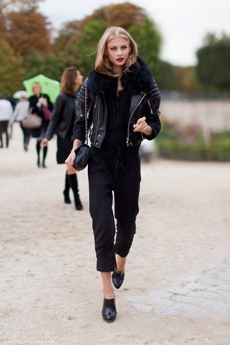 Aceasta combinație atemporală este, probabil, primul lucru care ne vine în minte atunci când ne imaginăm o ținută all black. Acest duet a existat din cele mai vechi timpuri și va rămâne mereu un simbol de eleganță clasică.